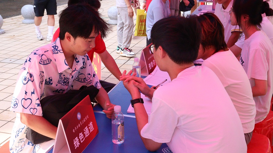 为确保迎新工作顺利开展,学院提前规划,精心布置了迎新现场。报到区域设置了清晰醒目的指示标识,新生们在志愿者的引导下,有条不紊地完成了身份验证、信息登记、校园卡领取等入学手续,整个报到过程高效流畅,秩序井然。志愿者和学生干部们主动为新生答疑解惑,帮助他们更好地了解大学生活,提前适应新环境。
