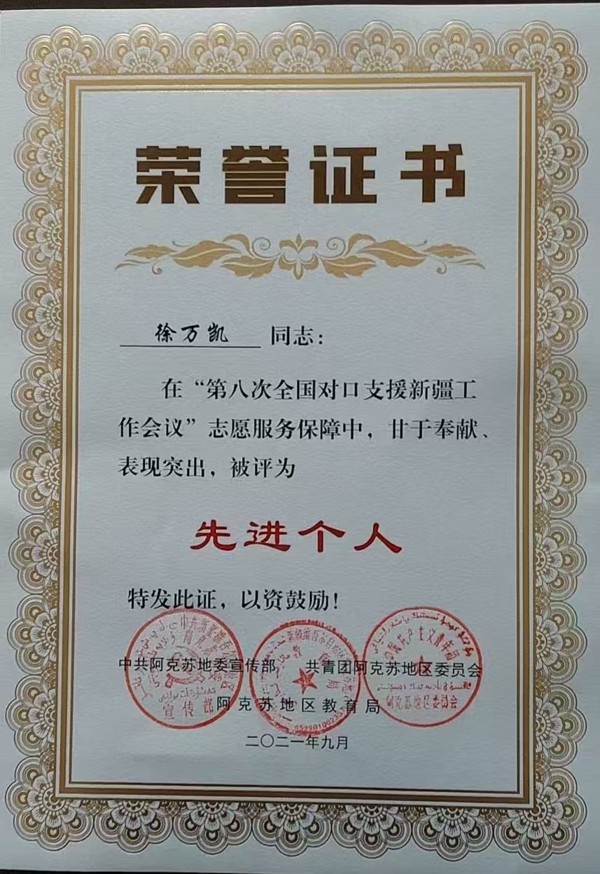 ——英国上市公司365物理教育优秀校友、阿克苏温宿县托乎拉乡中学教师徐万凯事迹材料
