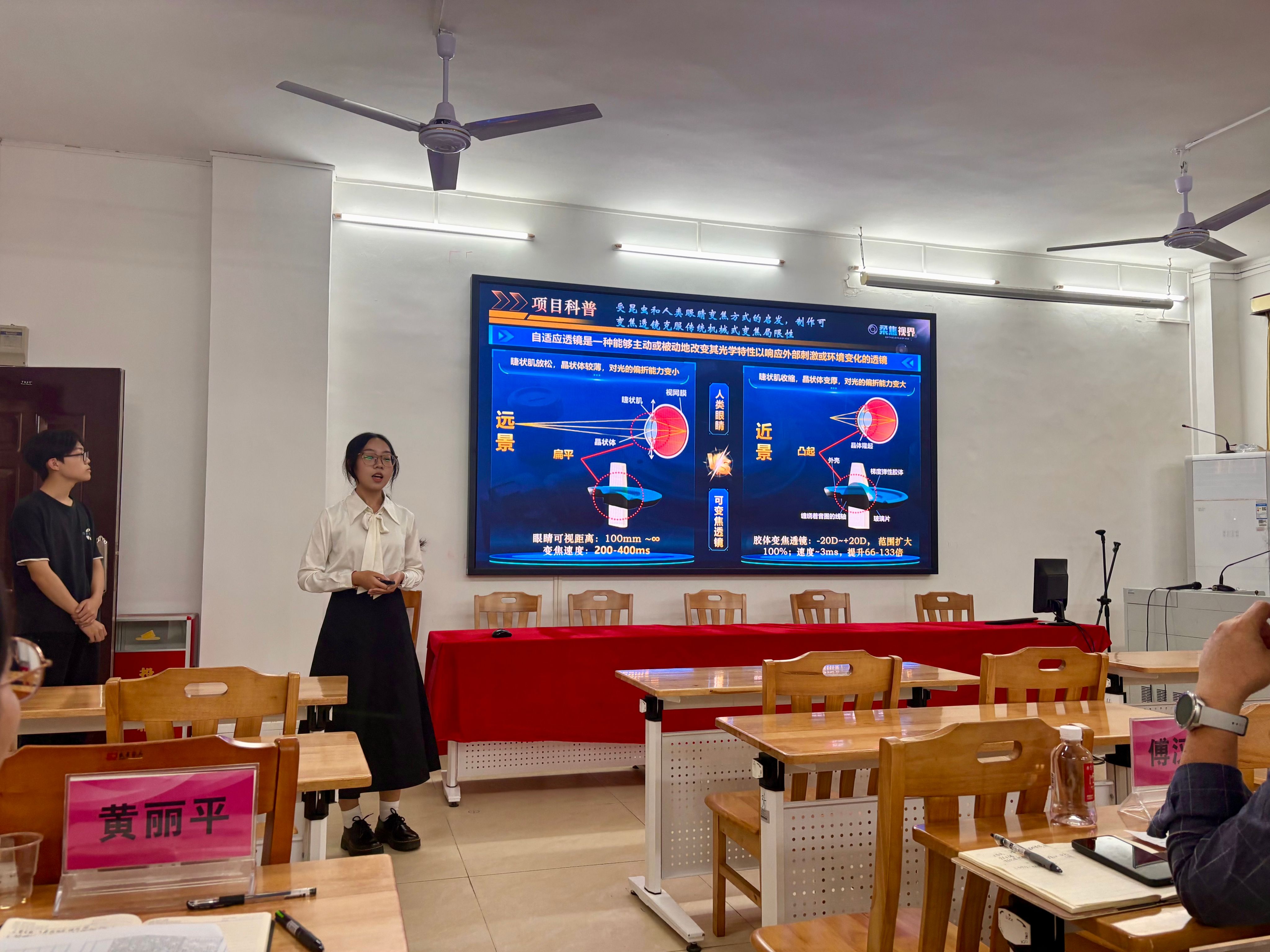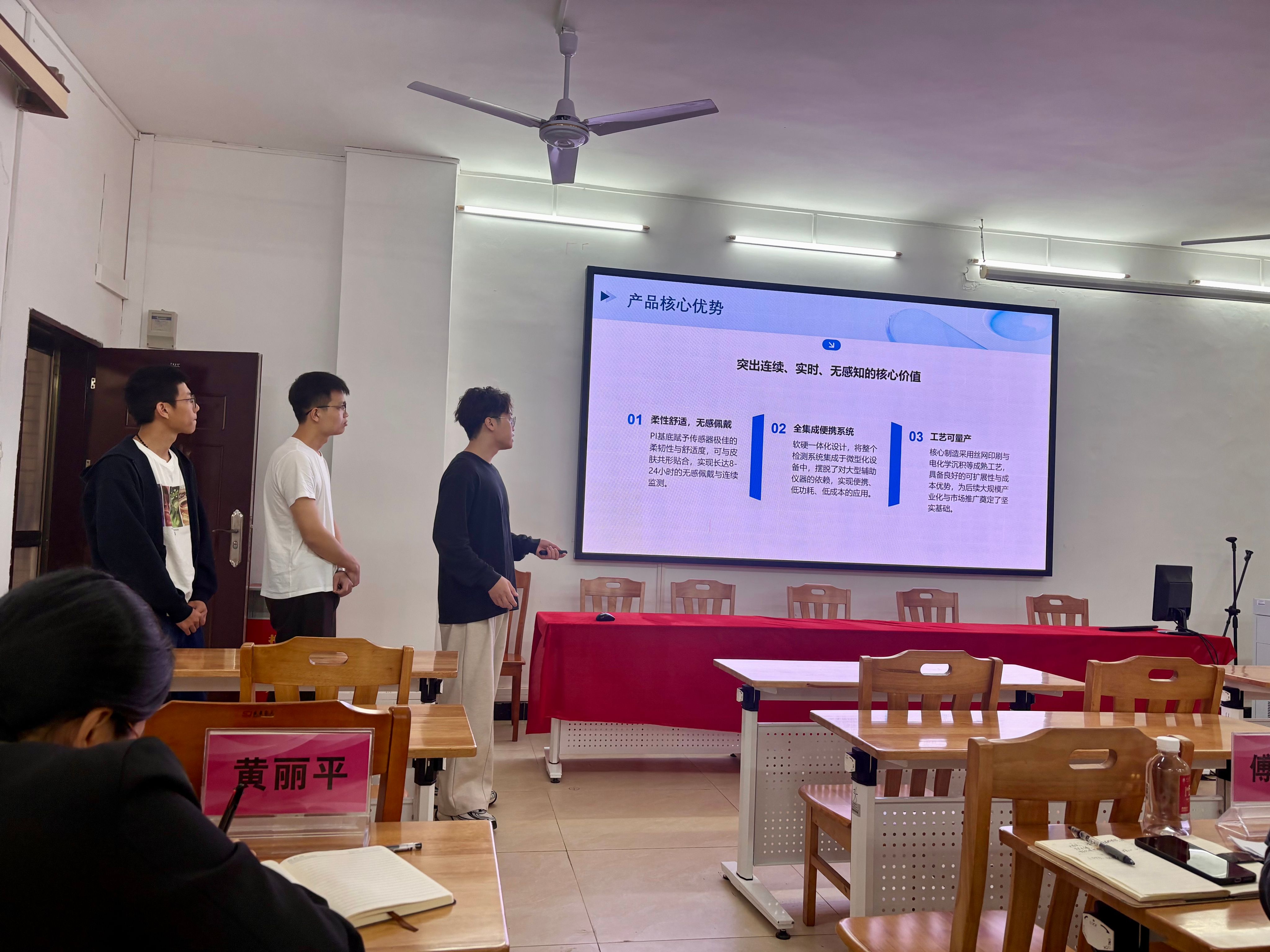 此次比赛共有7支参赛团队参加,傅汉球、王利萍、黄丽平、李博、吴小芬5名老师担任评委。评审会上,参赛团队代表现场参与答辩各参赛团队依次登台,借助PPT演示,围绕项目研究背景、设计思路、技术创新点、实践应用价值及未来规划等核心内容展开详细讲解。评委老师从专业角度对各项目进行精准点评,针对项目技术可行性、创新突破点、落地前景等方面提出针对性提问,并为项目后续完善、优化升级提供了切实可行的指导建议,助力团队补齐短板、打磨精品。